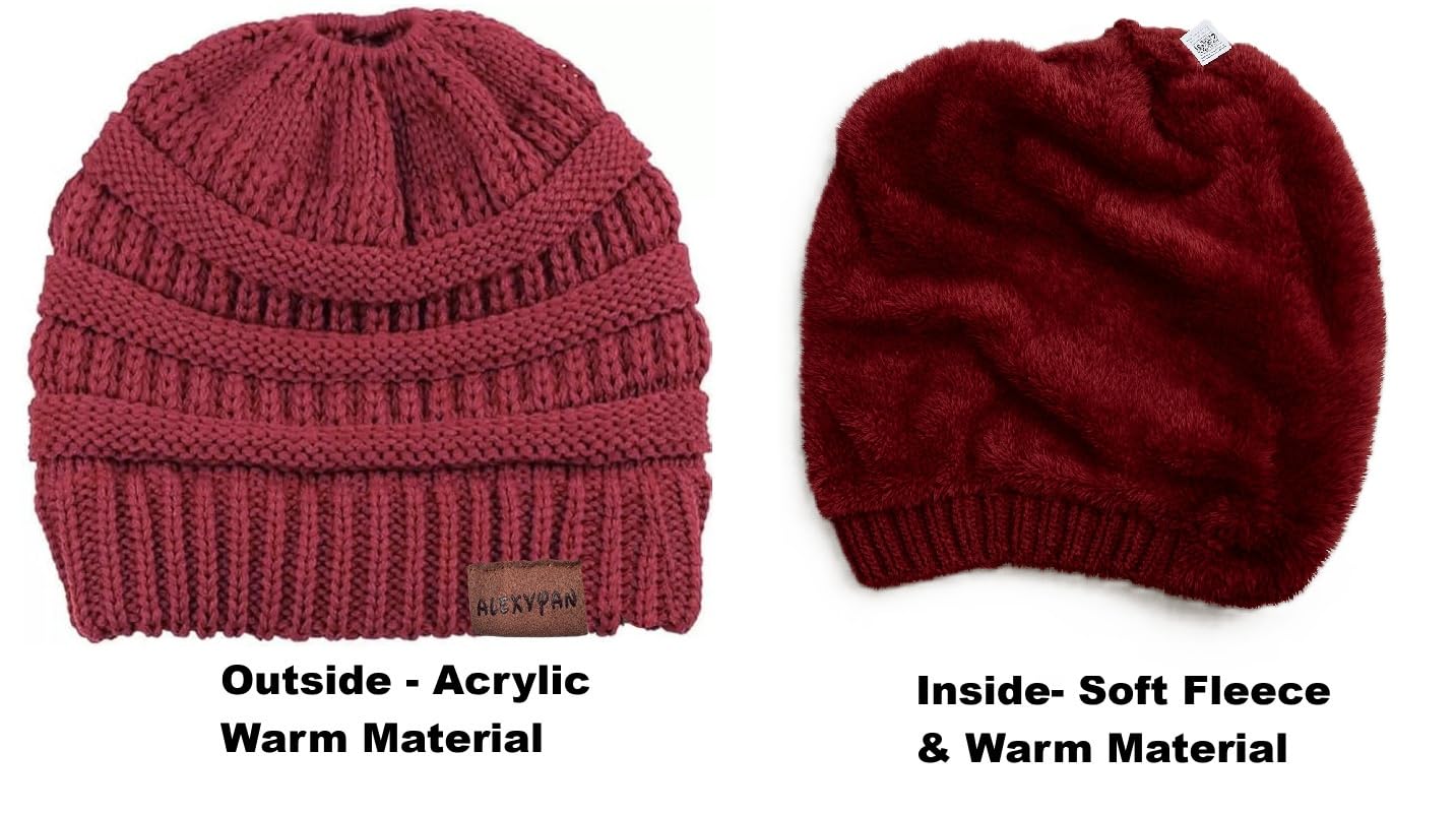 Stay cozy and stylish this winter with the Red Knitted Ponytail Hole Beanie Cap, designed to keep you warm without compromising on fashion. Made from soft, stretchable knit fabric and lined with luxurious fleece, this beanie ensures maximum comfort and insulation against the cold.
