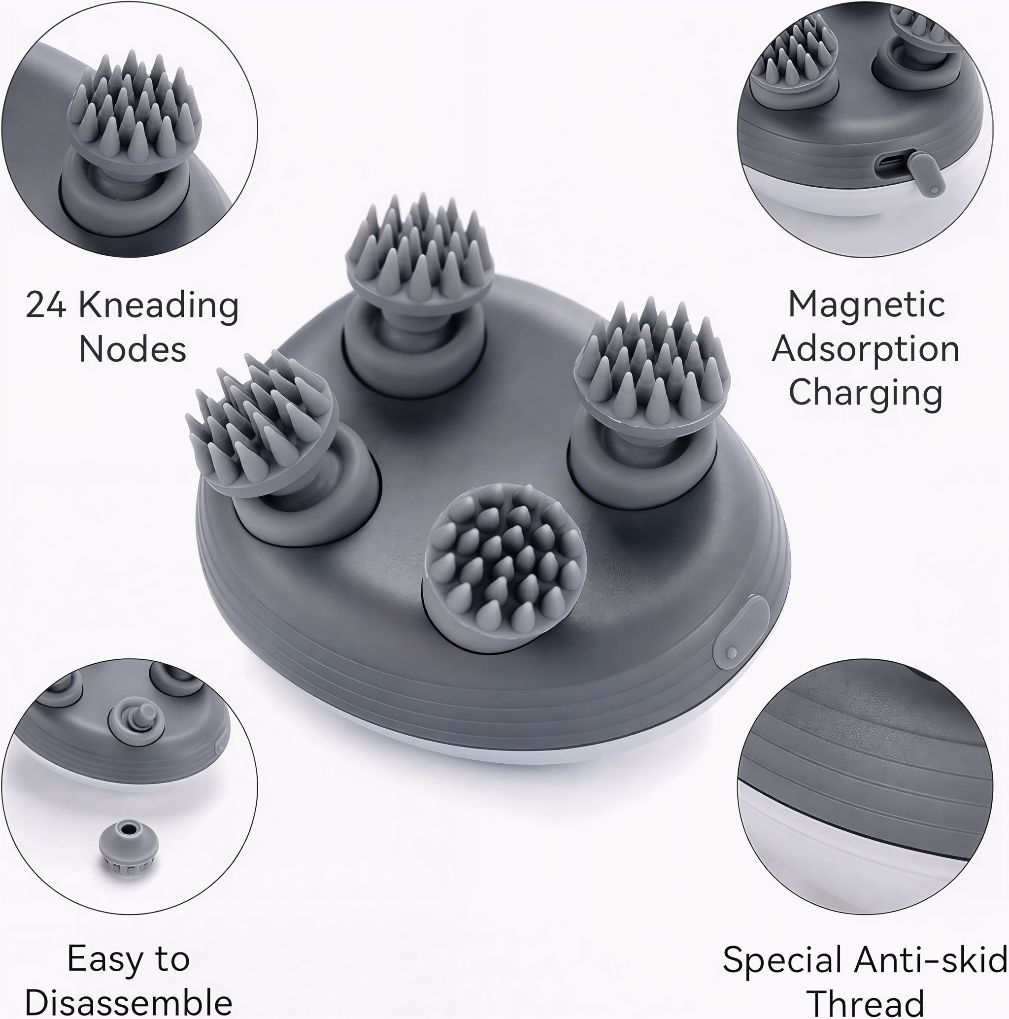 OrthoWorld Premium Scalp Massager – Portable Rechargeable Electric Head & Body Massager with 24 Silicone Kneading Nodes for Stress Relief, Pain Relief, Hair Growth, Deep Scalp Cleaning & Relaxation