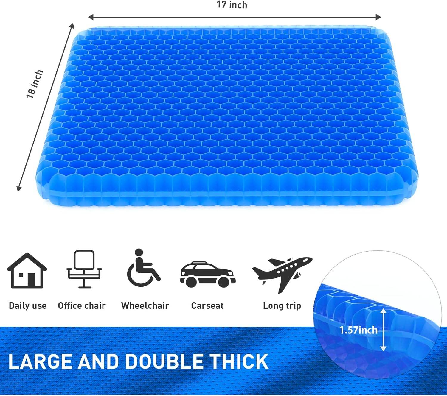 Gel Chair Cushion Seat Pad – Breathable Honeycomb Design for Car & Office Comfort | Orthoworld