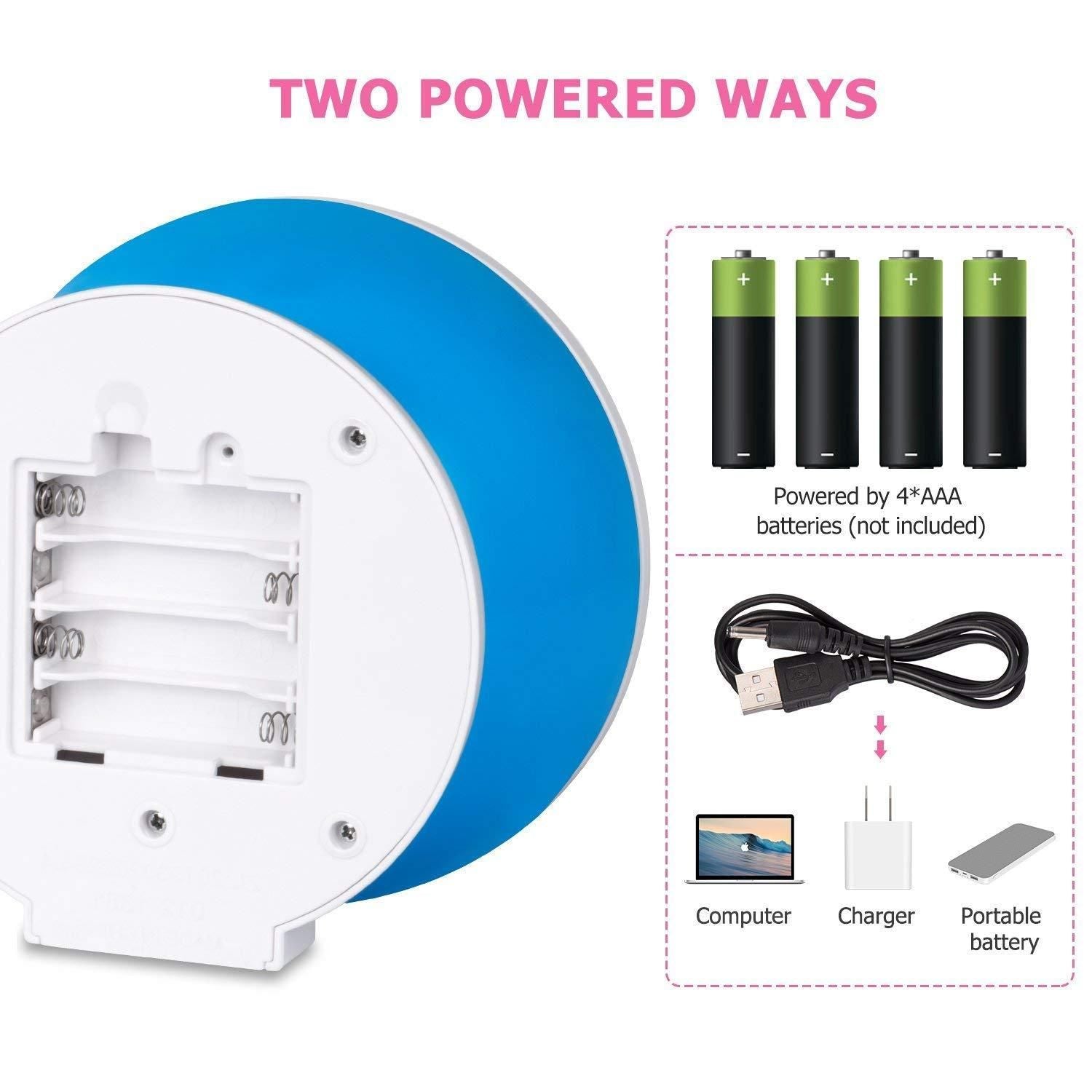 Simple plug-in or USB power for quick setup and hassle-free use.